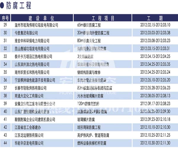宏順建設(shè)工程有限公司是國(guó)家批準(zhǔn)成立的專業(yè)高空作業(yè)企業(yè):承攬過(國(guó)內(nèi).國(guó)外)煙囪新建、煙囪防腐、磚煙囪新建、煙囪改造、煙囪維修、煙囪脫硫防腐、煙囪拆除加高、煙囪滑膜等高空作業(yè)工程。具有“不搭腳手架 、 不需要停產(chǎn)”施工特點(diǎn)。